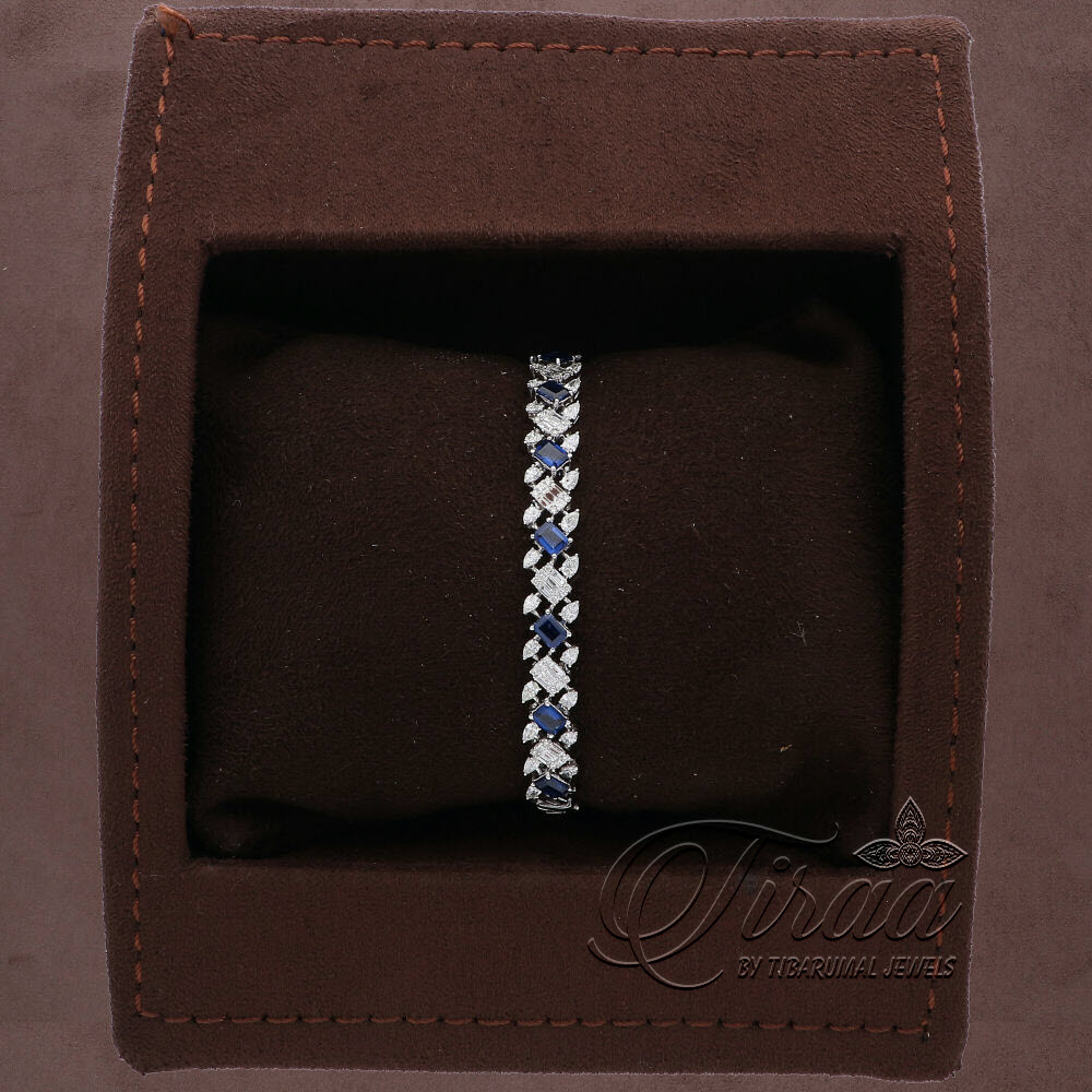 Wear this stunning diamond bangle with a modern or western dress to create an excellent impression. This traditional bangle studded with Round Diamonds, Diamond pears, Diamond Princess and Color stones.is an excellent accessory for immediately updating your style.