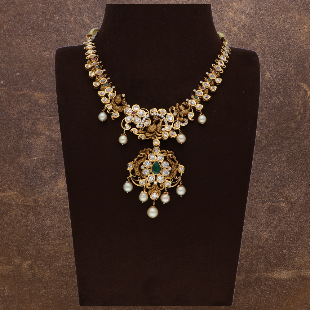 Stunning Gold Necklace: Adorn yourself with this breathtaking gold necklace, beautifully studded with vibrant Thai Rubies, Zambian Emeralds, Cubic Zircons, and elegant South Sea Pearls. Elevate your style and exude charm wherever you go.