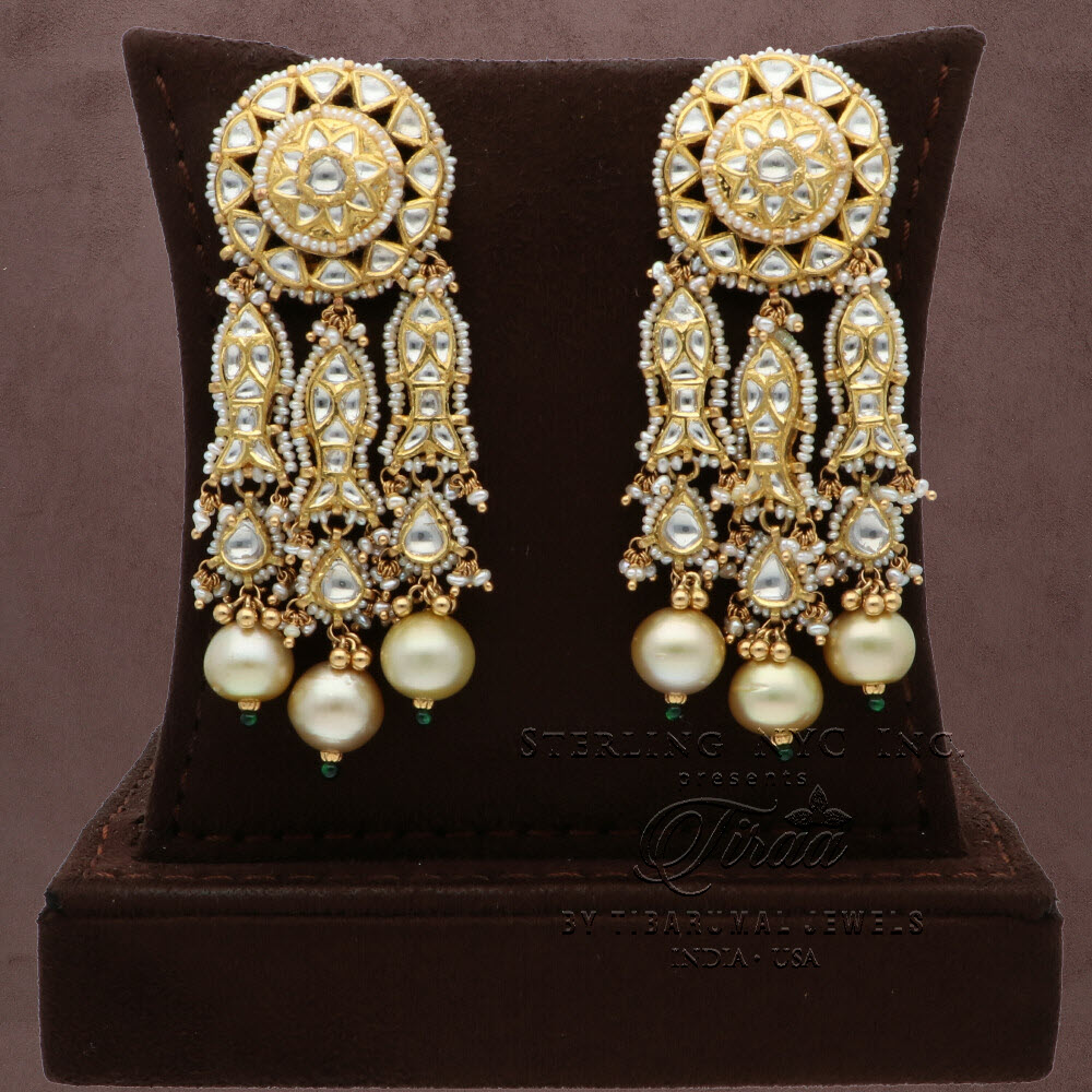 Studded with Flat diamonds, Emerald potas and Pearls,