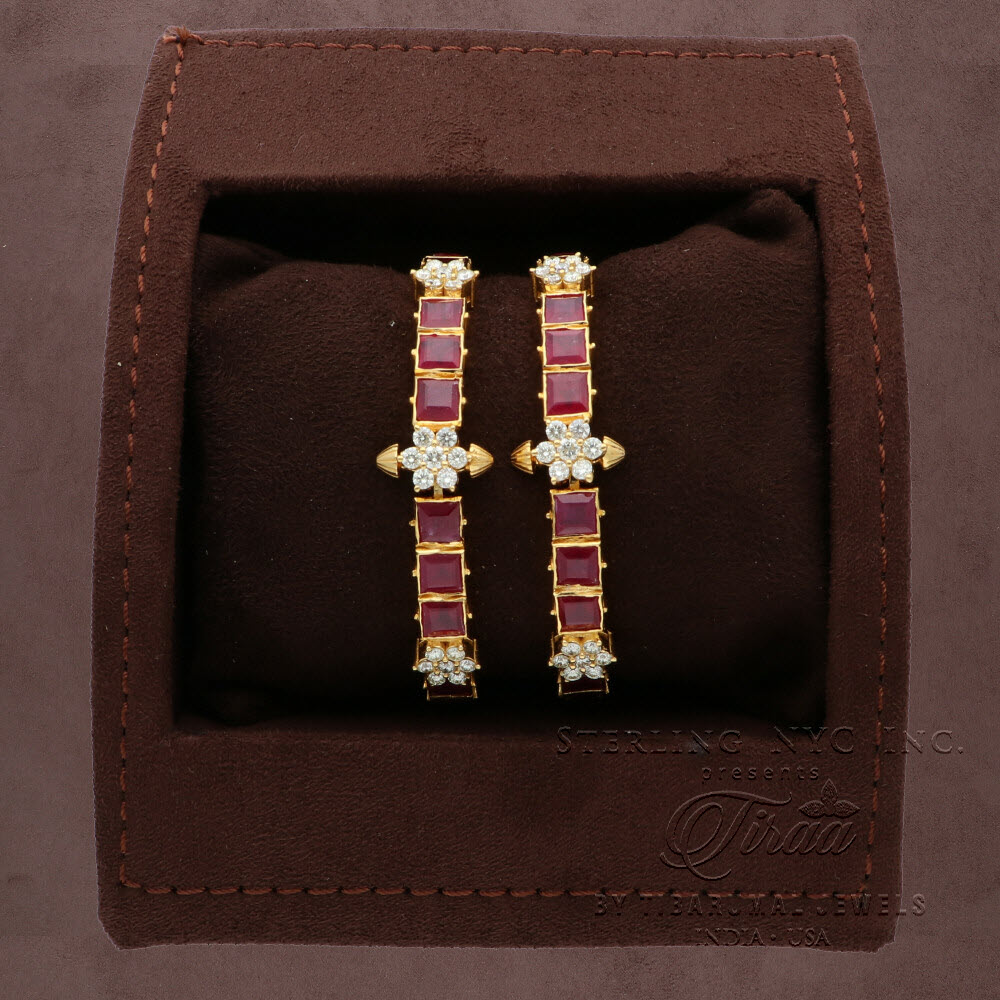 "Discover the unique allure of our Uncut Bangles! Studded with round diamonds and charming Rubies, these bangles radiate timeless elegance and charm. Perfect to add a luxurious touch to any outfit."