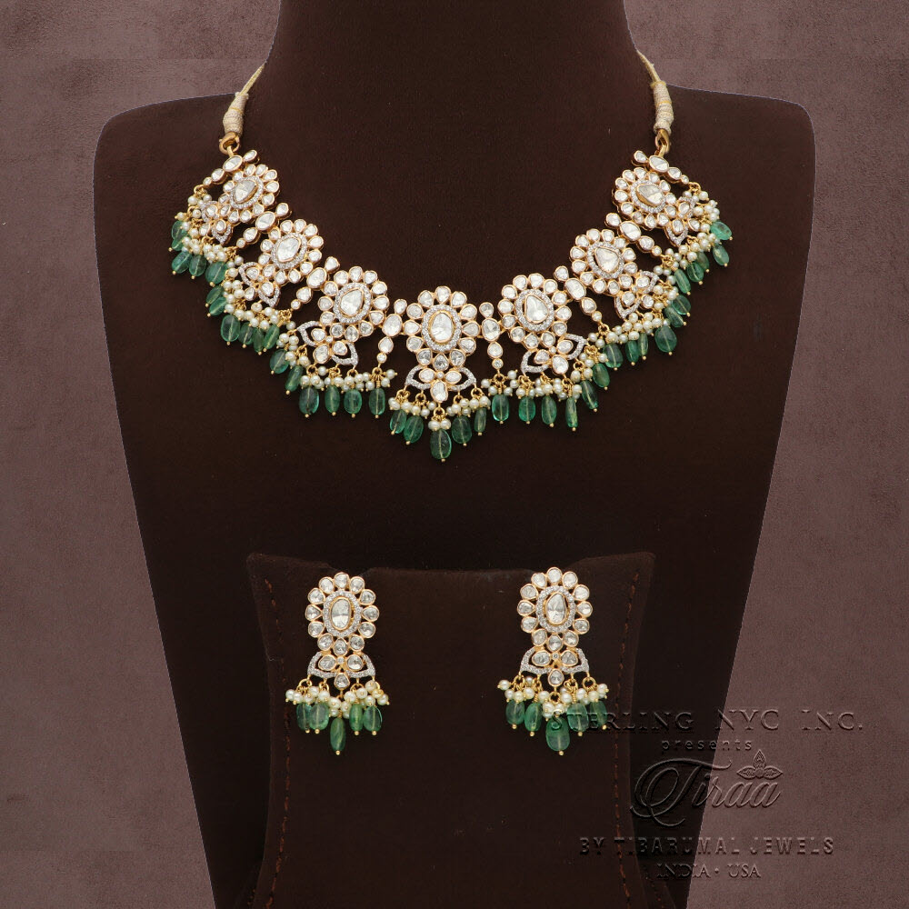 Studded with Diamonds, Flat diamonds and Strung with Emerald beeds, Pearls.