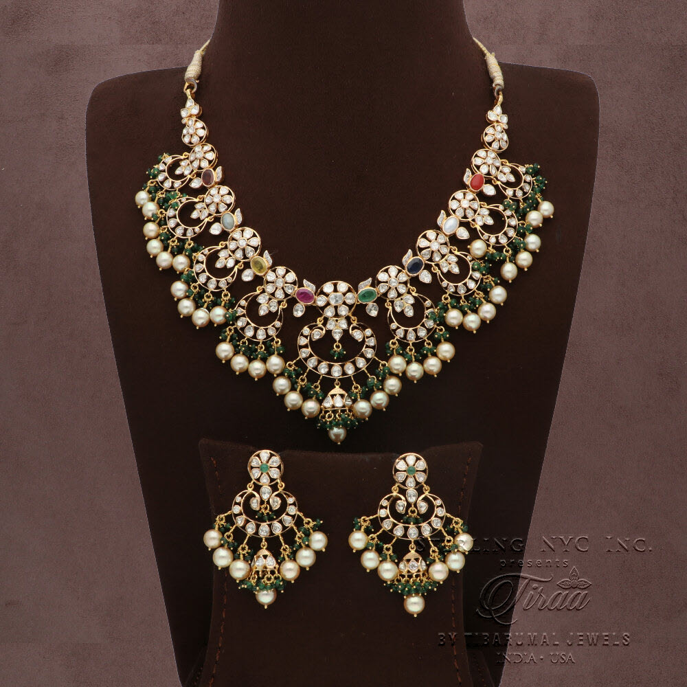 Studded with Diamonds, Flat diamonds, Semi-precious stones and Strung with Emerald beeds, Pearls.